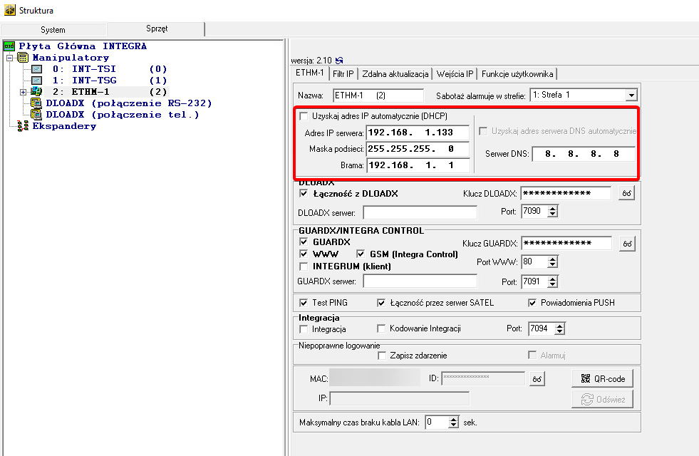 Moduł komunikacyjny ETHM-1 - oprogramowanie w wersji 2.10 lub nowszy