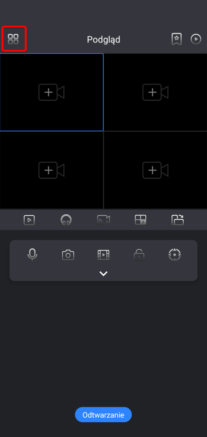 Po uruchomieniu aplikacji mobilnej kliknij przycisk (czterech kwadratów) znajdujących się w prawym górnym rogu aplikacji