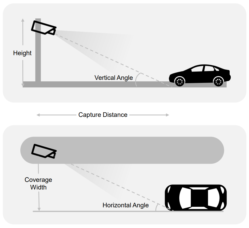 - Kąt poziomy: Kąt między osią optyczną kamery a torem ruchu pojazdu powinien wynosić ≤ 30°. Zachowanie tego parametru jest kluczowe dla minimalizacji zniekształceń obrazu tablicy rejestracyjnej.