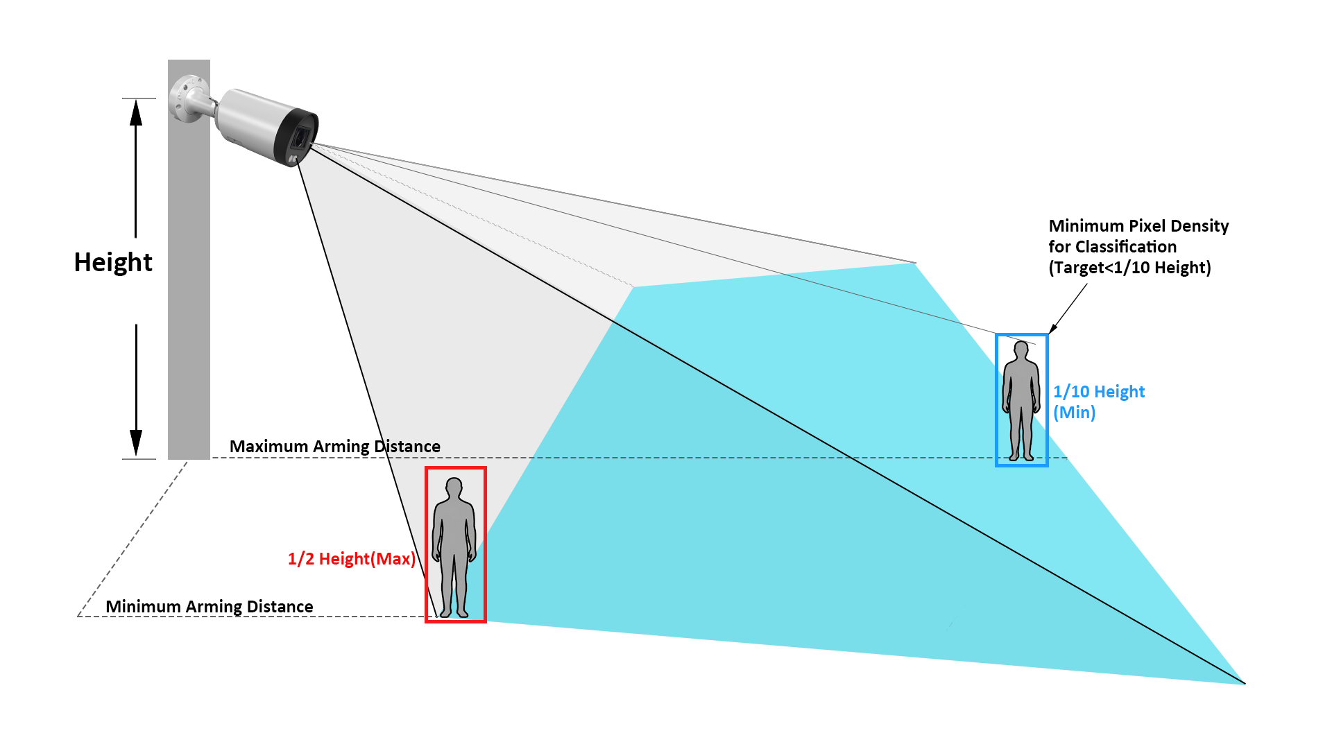 - Wymagania dotyczące wielkości obiektów: Obiekt w kadrze powinien zajmować pionowo od 1/10 do 1/2 wysokości rozdzielczości pionowej obrazu.